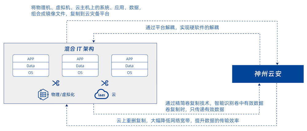 集備份、容災(zāi)功能為一體的云災(zāi)備平臺產(chǎn)品,將需要災(zāi)備保護的操作系統(tǒng)、應(yīng)用、數(shù)據(jù)打包成一個云鏡像文件,靈活快速的復(fù)制到云災(zāi)備平臺,為用戶的混合 IT 環(huán)境提供統(tǒng)一的災(zāi)備保護。