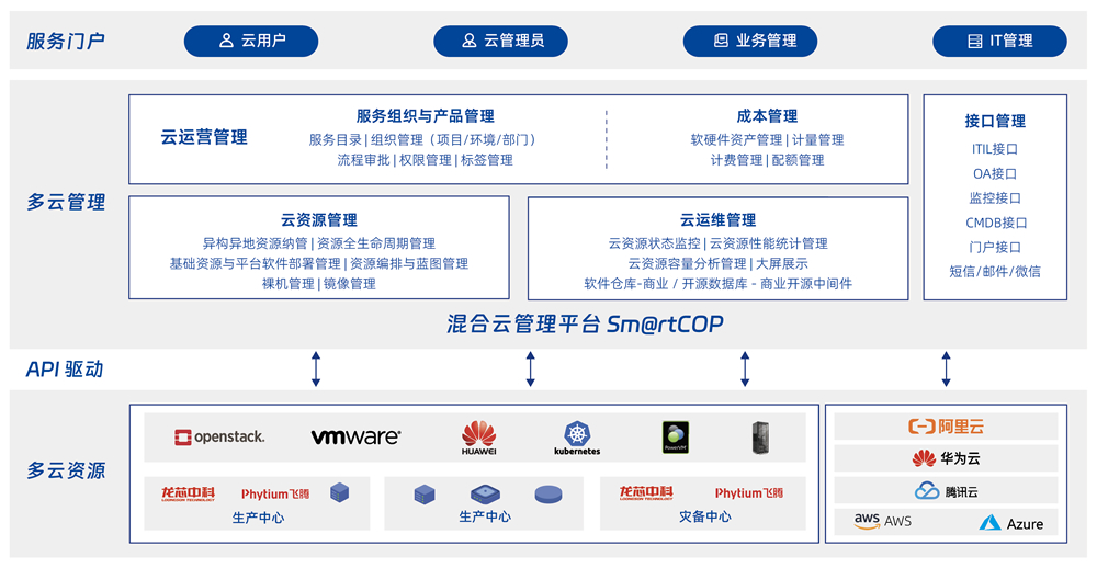 面向各行業(yè)用戶多云資源管理、運(yùn)維及服務(wù)提供的綜合挑戰(zhàn),提供異構(gòu)異地異芯片多云資源的統(tǒng)一管理、統(tǒng)一運(yùn)維、統(tǒng)一監(jiān)控及統(tǒng)一運(yùn)營(yíng)服務(wù),簡(jiǎn)化多云管理復(fù)雜度,提升用戶用云滿意度,釋放云平臺(tái)業(yè)務(wù)價(jià)值。