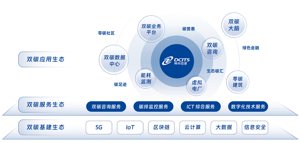 • 通過神州信息覆蓋云計(jì)算、區(qū)塊鏈、大數(shù)據(jù)、IoT 等資源匯聚能力, 構(gòu)建雙碳基建生態(tài),為雙碳應(yīng)用系統(tǒng)提供基礎(chǔ)設(shè)施建設(shè)保障。